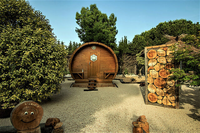 CALL +330636121108Avec « La Palmeraie » à Salles d’Aude (Aude), dans un magnifique parc arboré, Monique et Jean-Luc vous proposent un hébergement insolite (cabane dans les arbres, kota, tonneau, bateau), avec le confort et le calme : dépaysement assuré (le rêve).